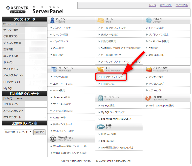 そのような場合のために、指定したドメインのディレクトリ以下にしかアクセスすることのできないFTPアカウントの追加手順について説明します。