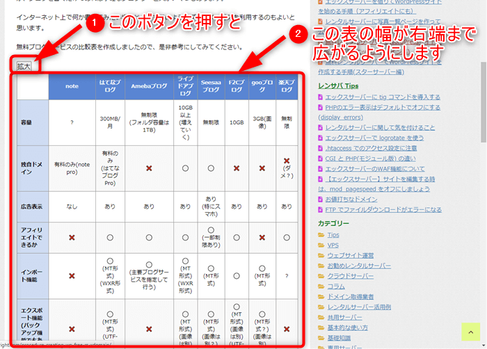 - スマートフォンで表示した場合は、全体の幅が狭いので「拡大」機能が使えません。なので、スマートフォンの場合はボタンを非表示にしています。