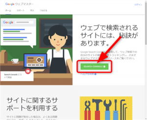 (1) Google Search Console にアクセスして、「SEARCH CONSOLE」というボタンをクリックします。