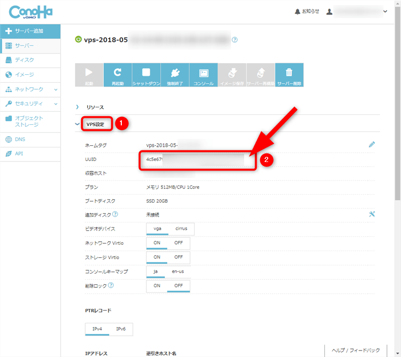 サーバーに対して何か処理を行う API は、そのサーバーの UUID をパラメータとして指定する必要があります。この UUID 自体も API を使って取得することができますが、今回は、管理パネル上に載っている UUID をメモしてシェルスクリプト内で使用します。