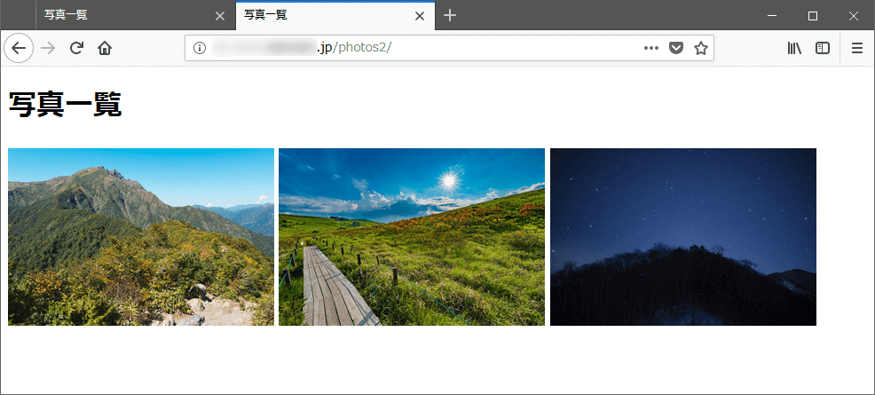 まず、写真画像を並べた以下のような Webページを作る例を説明します。