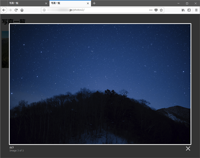 Webブラウザのアドレスバーも元のままです。これは、画面遷移は起きずに、画像が拡大表示されたということです。