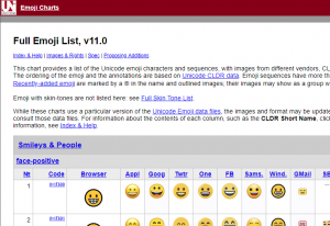 まず、使いたい絵文字を探すには例えば以下のサイトが使えます。