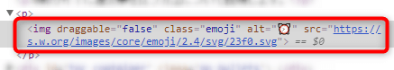 本来は絵文字そのものが表示されるだけです(ここでは、たまたま <p>要素で囲まれています)